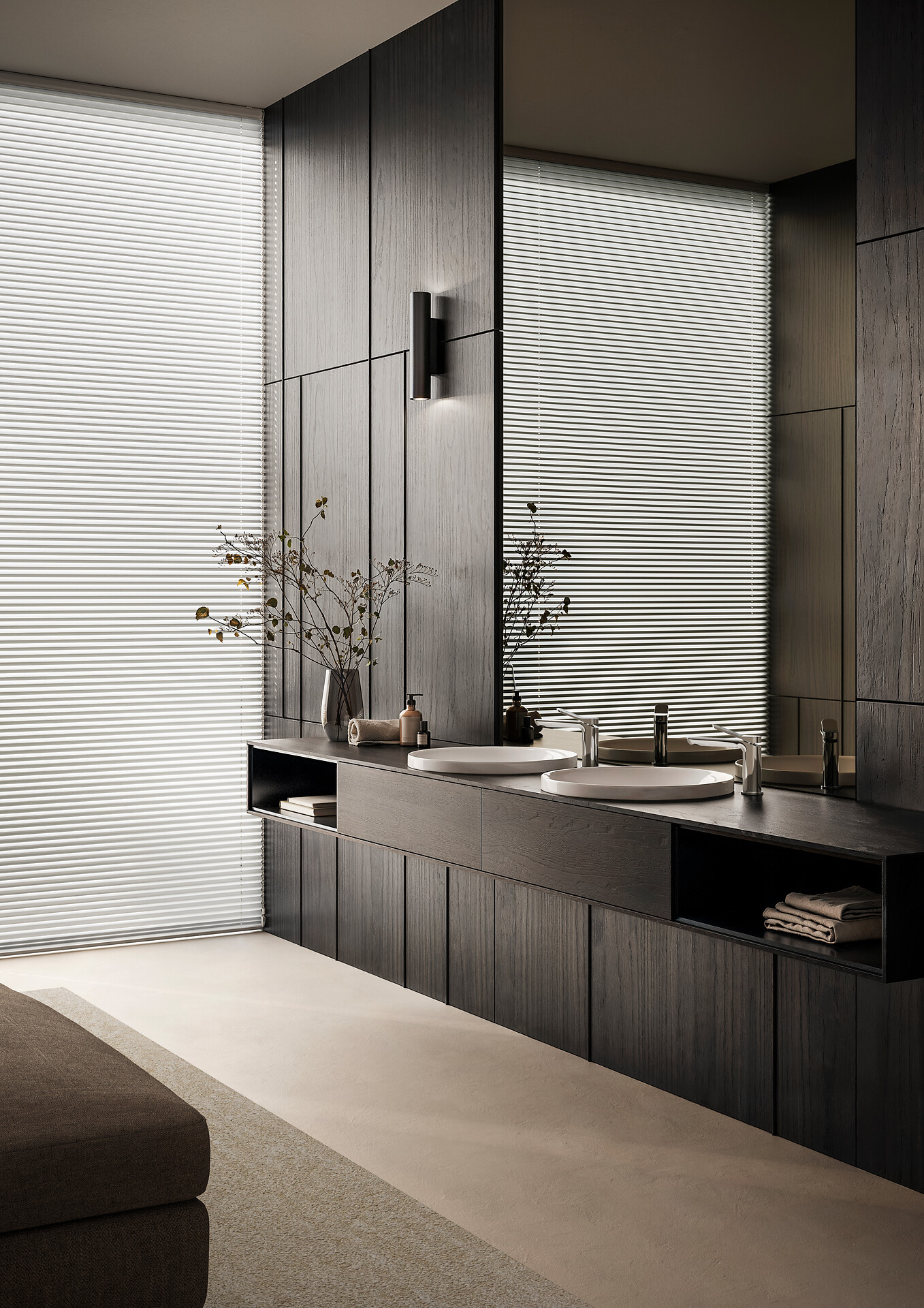 Die anmutigen Silhouetten, ergonomischen Formen und harmonischen Oberflächen der Via Meravigli erinnern an die diskrete und raffinierte Eleganz Mailands.